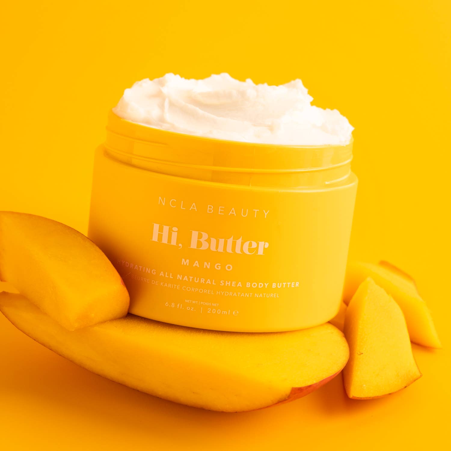 Indulge in Hi, Butter All Natural Shea Body Butter - Mango, a nourishing formula made with organic shea butter, cocoa butter, mango butter, and hempseed oil. These natural ingredients work together to soften, smooth, and firm skin, providing long-lasting hydration and improving skin texture. This ultra-hydrating body butter has a refreshing, sweet, and warm mango nectar scent. The luxurious blend of deionized water, organic oils, and fruit extracts make it a must-have for those looking to improve the health and appearance of their skin.
